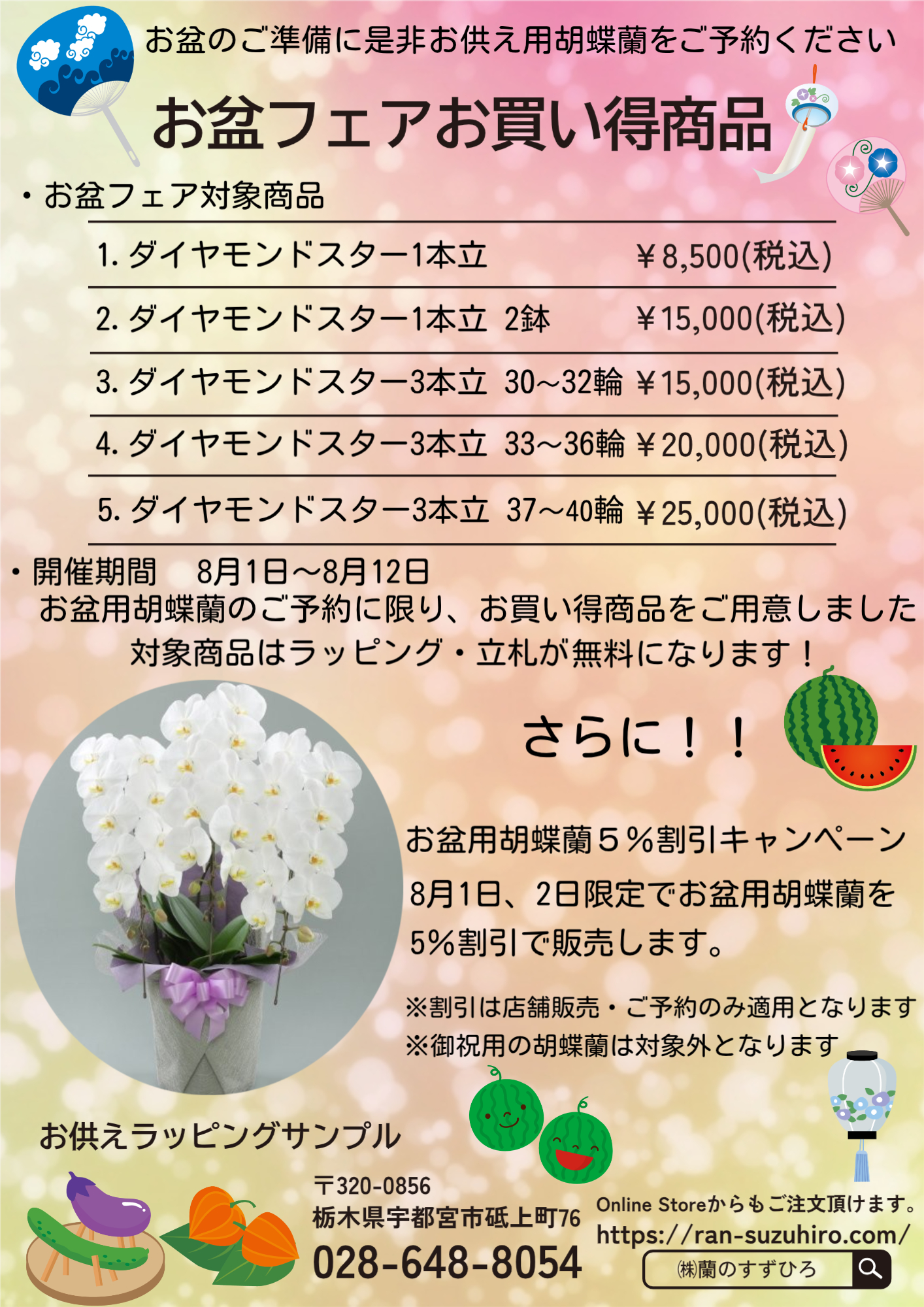 これまでコスト削減や業務効率化により価格維持に努めてまいりましたが、昨今の原材料費や物流費の高騰により、胡蝶蘭の安定供給と品質維持が大変困難な状況となっております。つきましては誠に恐縮ではございますが、一部商品の価格を改定させていただく運びとなりました。